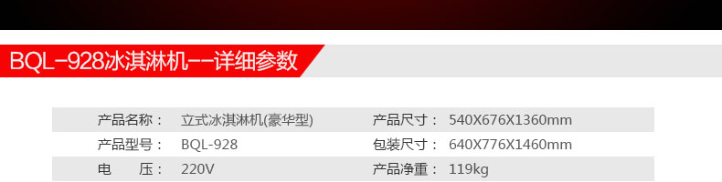 BQL-928立式冰淇淋機(jī),1.選用國(guó)際牌壓縮機(jī),輔以旭眾精湛工藝,大大縮短冰淇淋成型時(shí)間,高效節(jié)能;2.全新液晶智能觸控面板,簡(jiǎn)單明了,多功能易操作;3.全新升級(jí)專業(yè)膨化泵,膨化率高,產(chǎn)量增加30%;4.一鍵清洗功能,省時(shí)方便;5.主要部件采用不銹鋼材質(zhì),時(shí)尚美觀,持久耐用;6.先進(jìn)的機(jī)械攪拌系統(tǒng),機(jī)器運(yùn)行穩(wěn)定可靠,低噪音,產(chǎn)品口感爽滑細(xì)嫩。