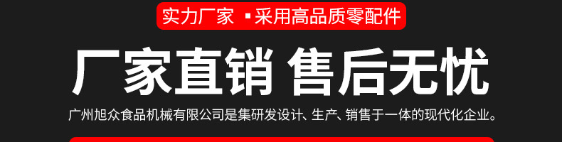 廣州旭眾食品機(jī)械有限公司是一家集科研開(kāi)發(fā),生產(chǎn)設(shè)計(jì),營(yíng)銷服務(wù)為一體的現(xiàn)代化生產(chǎn)企業(yè)。現(xiàn)代化生產(chǎn)車間,精湛制造技術(shù),所產(chǎn)機(jī)械歷經(jīng)市場(chǎng)重重考驗(yàn),不斷贏得海內(nèi)外客戶的贊譽(yù)。