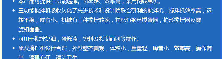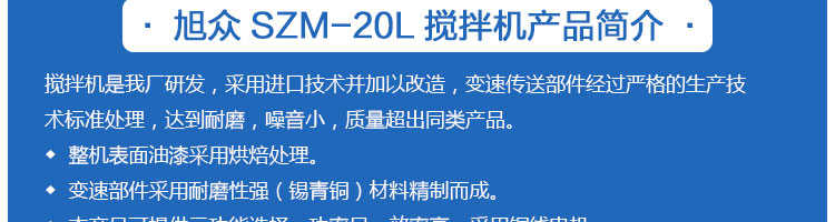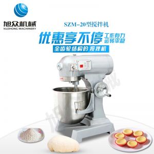 SZM-20型四功能攪拌機,可用于攪拌奶油、蛋糕液、餡料及和制面團等操作。打蛋攪拌機等作攪拌食料、揉和面團之用,是生產(chǎn)優(yōu)質(zhì)糕點的理想設備,適用于酒店、飯店、學校部門、面包屋以及食品廠家。