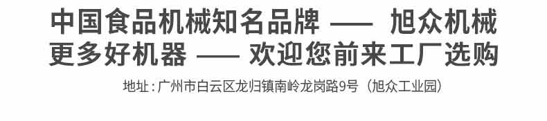 廣州旭眾食品機(jī)械有限公司是一家集科研開發(fā),生產(chǎn)設(shè)計,營銷服務(wù)為一體的現(xiàn)代化生產(chǎn)企業(yè)?,F(xiàn)代化生產(chǎn)車間,精湛制造技術(shù),所產(chǎn)機(jī)械歷經(jīng)市場重重考驗,不斷贏得海內(nèi)外客戶的贊譽(yù)。