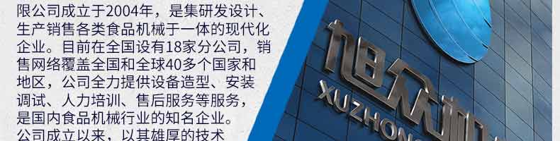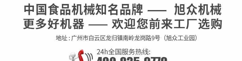 廣州旭眾食品機(jī)械有限公司是一家集科研開發(fā),生產(chǎn)設(shè)計(jì),營銷服務(wù)為一體的現(xiàn)代化生產(chǎn)企業(yè)?,F(xiàn)代化生產(chǎn)車間,精湛制造技術(shù),所產(chǎn)機(jī)械歷經(jīng)市場(chǎng)重重考驗(yàn),不斷贏得海內(nèi)外客戶的贊譽(yù)。