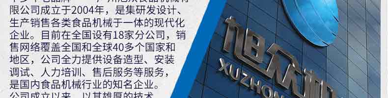 廣州旭眾食品機(jī)械有限公司是一家集科研開發(fā),生產(chǎn)設(shè)計(jì),營(yíng)銷服務(wù)為一體的現(xiàn)代化生產(chǎn)企業(yè)?,F(xiàn)代化生產(chǎn)車間,精湛制造技術(shù),所產(chǎn)機(jī)械歷經(jīng)市場(chǎng)重重考驗(yàn),不斷贏得海內(nèi)外客戶的贊譽(yù)。