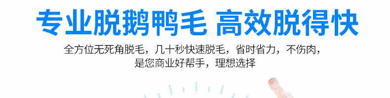 鵝鴨型脫毛機,本機用于雞、鴨、鵝宰殺后的自動脫毛,還可用于脫姜皮、脫馬鈴薯皮、脫魚鱗等農(nóng)產(chǎn)品。本機操作簡單,省力、省時間、工作效率相當于十多個人的手工勞動。
